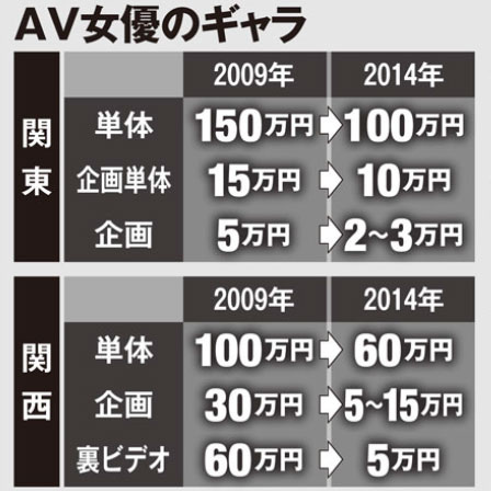 (AV女優的酬勞變化,關西也銳減的太誇張了吧?)