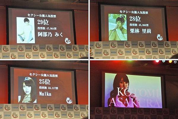 攝影師是誰呀,怎麼把大家拍的這麼"肉感"呢,不管了~讓我們恭喜入圍的人氣女優們!有興趣的粉絲們可以去玩一下『人中之龍』遊戲喔~~^^