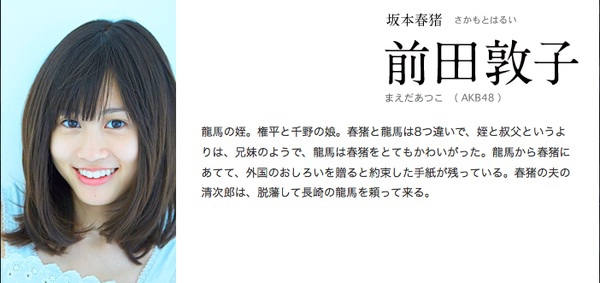 『龍馬傳』是2010年NHK電視台播放的重量型大河劇,由"福山雅治"飾演主角"坂本龍馬"的故事,裡面還有許多大家耳熟能詳的女星,像"廣末涼子"、"蒼井憂"、"前AKB48 的前田敦子"等明星演出!