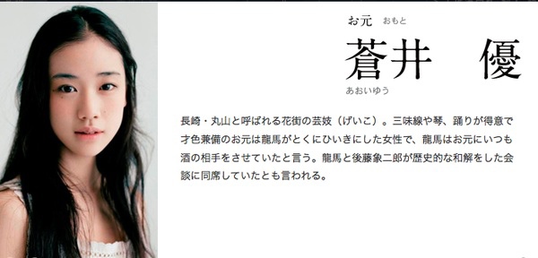 這可是在NHK當中幾乎看不到的畫面~第一次有AV女優加入,當時28歲的前AV女優"吉川奈央" 的演出是讓大家最期待的,她是在第四集《江戶の鬼小町》中登場,飾演的是一位在品川宿負責盛飯的女子"志乃",不僅戲中不僅會露出雪白美腿~還會在幫福山 雅治送餐時用魅惑的眼神勾引他,然後還會跟戲中另一知名男星"谷原章介"上演SOD劇情!由於吉川是女多男性看AV過程中心裡幻想的對象,所以她在『龍馬 傳』中登場,真的是讓愛她的粉絲受寵若驚!而她本人也在部落格當中感謝這次能夠有機會出演,當然她在戲中表現的也相當亮眼~